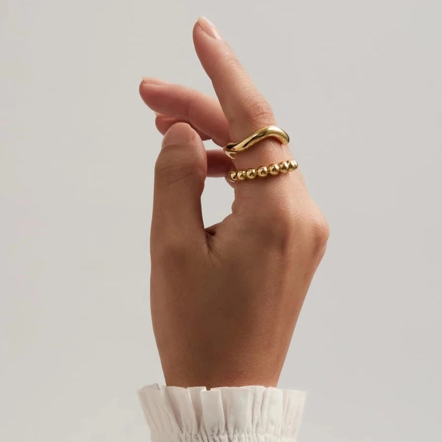 The Bellina Ring is a modern classic, crafted from brass and plated in semi-precious metals for a luxurious finish.